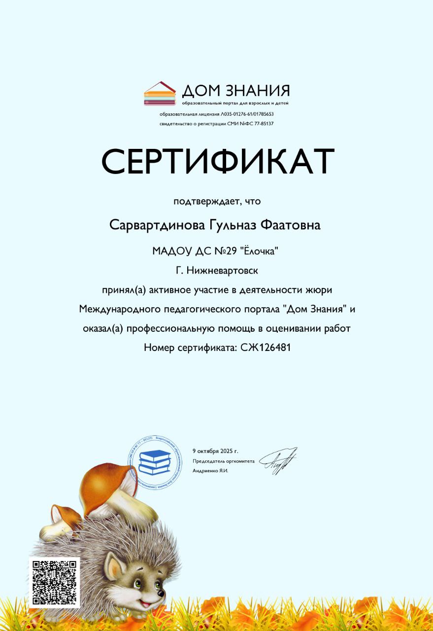 Грамота от МАДОУ ДС №29 "Ёлочка"